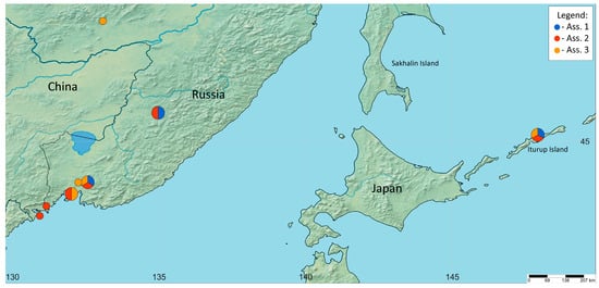 Distribution: Cenoses of association are revealed in Primorsky Territory (Shkotovsky, Khasansky, and Krasnoarmeisky Districts, Furugelm Island) and Sakhalin Region (Iturup Island).