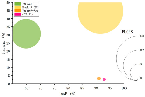 CVW-Etr achieves a mAP@0.5 of 92.9%, outperforming YOLACT, Mask R-CNN, and YOLOv8-Seg in terms of segmentation accuracy. Additionally, our proposed model exhibits lower FLOPS and parameters, specifically 10.1G and 2.6M, respectively.
