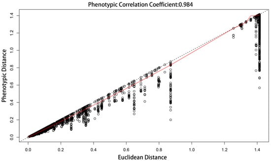 Phenotypic correlation of cluster analysis results with Euclidean distances.