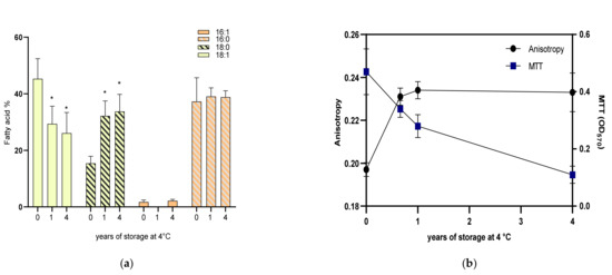 2.2. Changes in the FA Profile in Entrapped Cells for Long Periods Are Not Enough to Restore Cell Fluidity