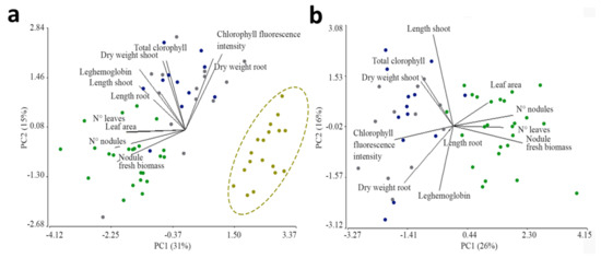 | Shoot | Root | Shoot | Root | N° Nodules | Biomass (mg) | Leghemoglobin (mg.gr−1 Nodule) | |