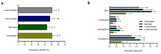 - Bashan, Y.; Hernandez, J.P.; Leyva, L.A.; Bacilio, M. Alginate microbeads as inoculant carriers for plant growth-promoting bacteria. Biol. Fertil. Soils 2002, 35, 359–368. [Google Scholar] [CrossRef]