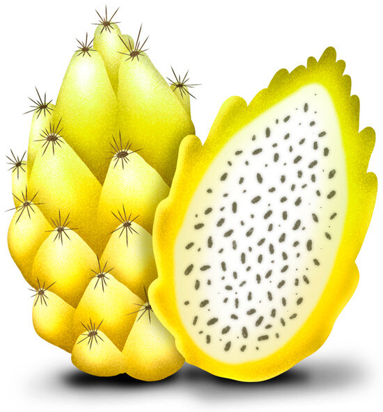 - Arivalagan, M.; Karunakaran, G.; Roy, T.K.; Dinsha, M.; Sindhu, B.C.; Shilpashree, V.M.; Satisha, G.C.; Shivashankara, K.S. Biochemical and Nutritional Characterization of Dragon Fruit (Hylocereus species). Food Chem. 2021, 353, 129426. [Google Scholar] [CrossRef]