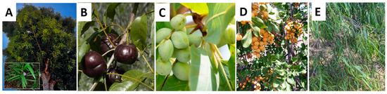 (A) Podocarpus elatus (Illawarra plum), (B) Pleiogynium timoriense (Burdekin plum), (C) Terminalia ferdinandiana (Kakadu plum), (D) Cupaniopsis anacardioides (Tuckeroo) and (E) Pittosporum angustifolium (Gumbi gumbi).