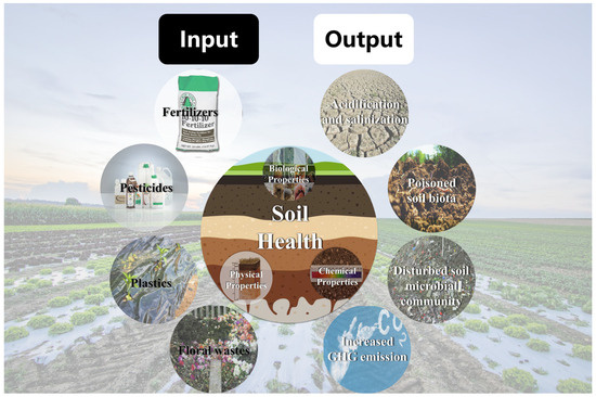 Due to the indiscriminate usage of fertilizers, pesticides and plastics along with the poor treatment of flower wastes, soils in the floriculture agroecosystem face many threats as summarized in Figure 1.