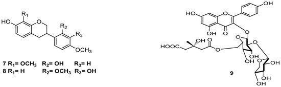 - EL-Sebakhy, N.A.; Asaad, A.M.; Abdallah, R.M.; Toaima, S.M.; Abdel-Kader, M.S.; Stermitz, F.R. Antimicrobial isoflavans from Astragalus species. Phytochemistry 1994, 36, 1387–1389. [Google Scholar] [CrossRef]