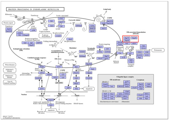 “Protein processing in the endoplasmic reticulum” pathways. Note: The red box marks the location of the HSP family.