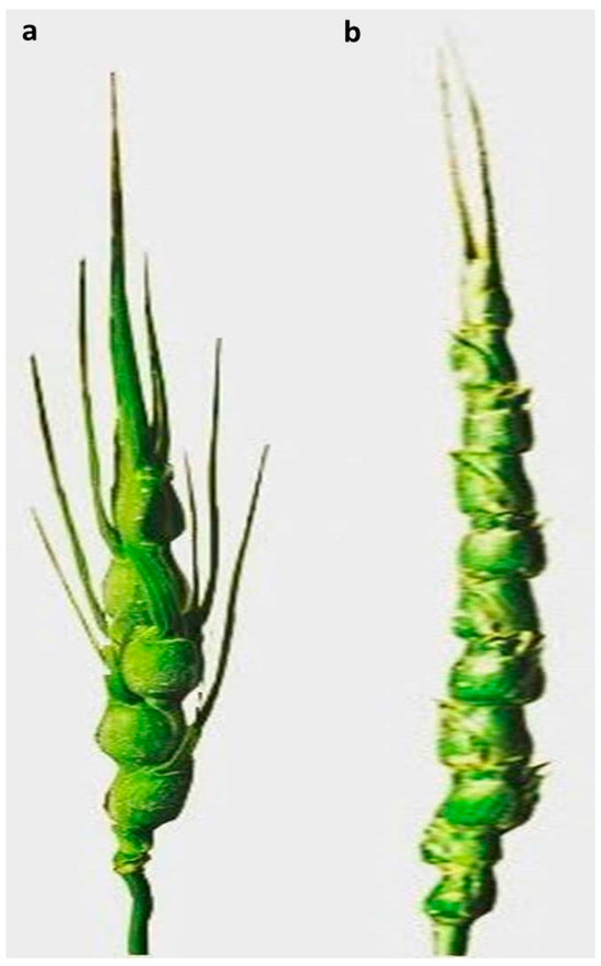 The spike of Ae. crassa; (a): Ae. crassa (4x); (b): Ae. crassa (6x).