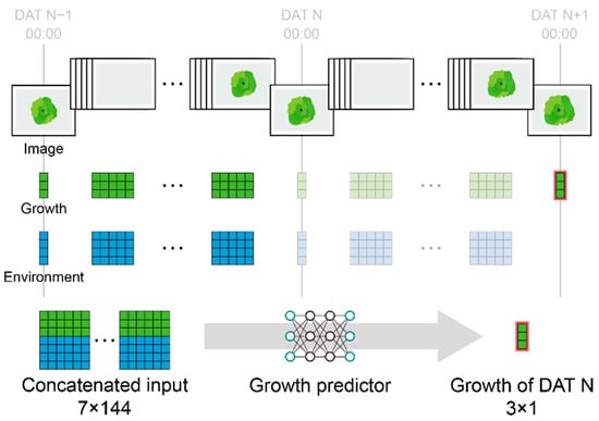 The following supporting information can be downloaded at: https://www.mdpi.com/article/10.3390/plants13213110/s1, Table S1. The R2, root mean square error (RMSE), and normalized RMSE (NRMSE) for the trained image converter. The selected models were EfficientNet and ViT-s; Table S2. The R2, root mean square error (RMSE), and normalized RMSE (NRMSE) for the trained growth predictor. The selected models were 1D ConvNet with U-Net feature extraction layer.
