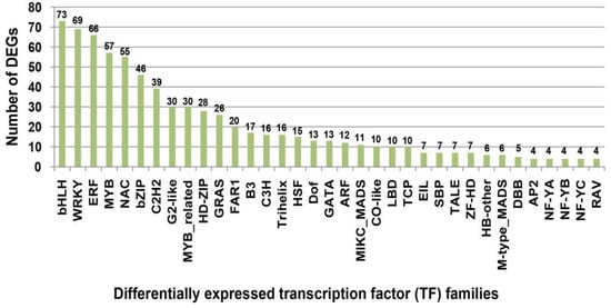 The number of differentially expressed transcription factors (TFs) in response to inoculation by two strains. The figure shows some TF families. Families with less than four DEGs detected are not shown.