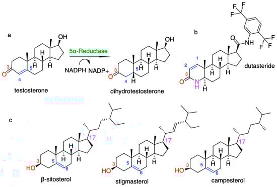 - Azzouni, F.; Godoy, A.; Li, Y.; Mohler, J. The 5 alpha-reductase isozyme family: A review of basic biology and their role in human diseases. Adv. Urol. 2012, 2012, 530121. [Google Scholar] [CrossRef]