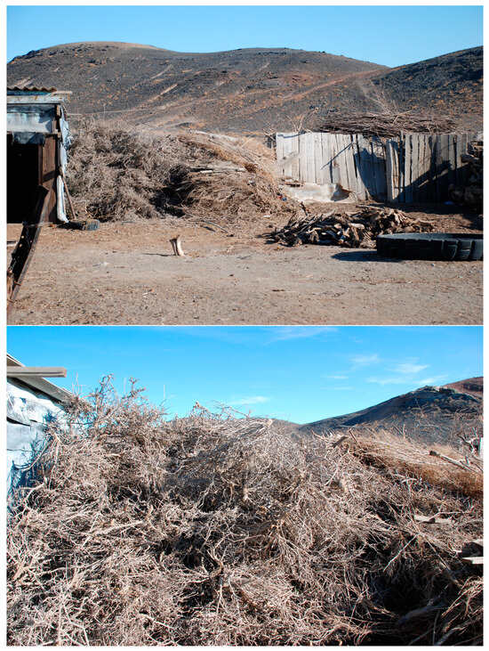 Harvested firewood from large specimens of Rh. erythroxyloides subsp. sintenisii by residents of the village of Zharkala, located next to the Bukantau populations.