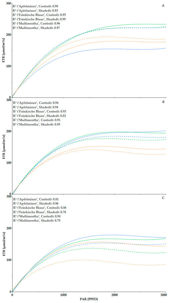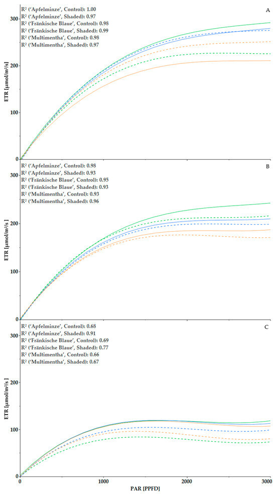 Chicago/Turabian StyleHubert-Schöler, Charlotte, Saskia Tsiaparas, Katharina Luhmer, Marcel Dieter Moll, Maike Passon, Matthias Wüst, Andreas Schieber, and Ralf Pude. 2024. "Essential Oil Composition and Physiology of Three Mentha Genotypes Under Shaded Field Conditions" Plants 13, no. 22: 3155. https://doi.org/10.3390/plants13223155