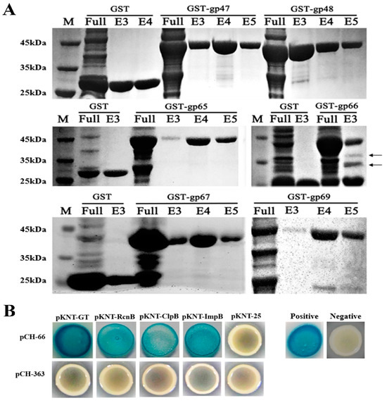 | gp47 | ATATAGGATCCATGGCCCTGCGCAAGAACTCCTC/TGTCAGTCGACTCAGCCTTGCGCGAAGGCG | Prokaryotic expression of the corresponding proteins |