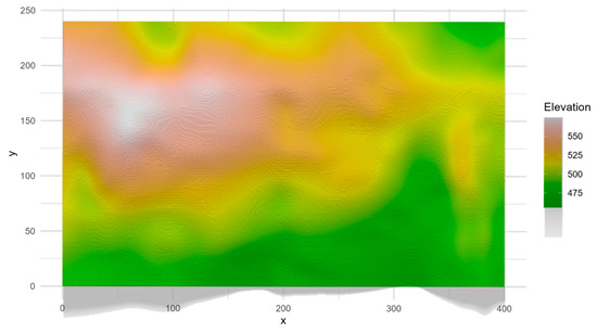Microtopography in dynamic plot. This map only shows the combined terrain factors and the basic conditions of elevation; specific factors such as aspect and slope are shown in Figure S1 in the Supplementary Files. The shadow effect illustrates terrain undulations in orthographic view.