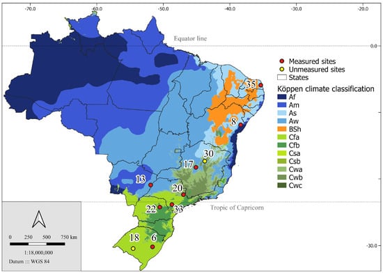 - Pereira, A.R.; Angelocci, L.R.; Sentelhas, P.C. Meteorologia Agrícola, 4th ed.; Universidade de São Paulo, Escola Superior de Agricultura “Luiz de Queiroz”: Piracicaba, SP, Brazil, 2007. [Google Scholar]