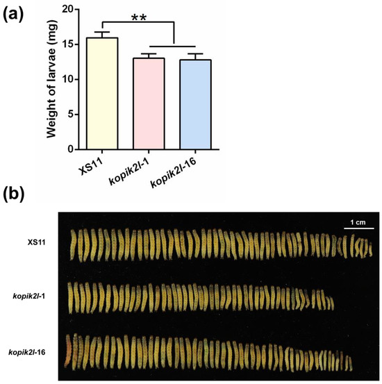 To measure LF performance, freshly hatched LF neonates were allowed to feed on WT and ko-pik2l rice plants. The larval mass (to an accuracy of 0.1 mg) was individually measured 11 days later. Each treatment was replicated 48~51 times.