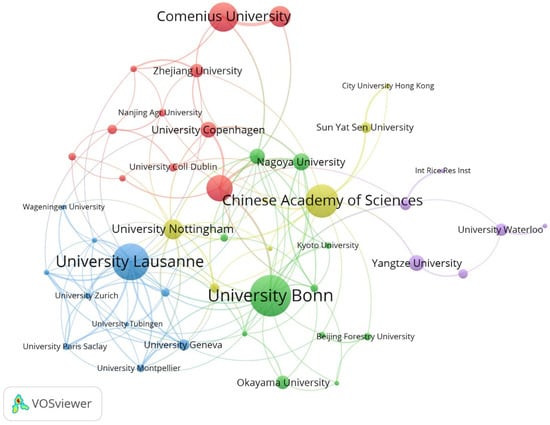 Collaborative network of institutions on apoplastic barriers from 2003 to 2023.