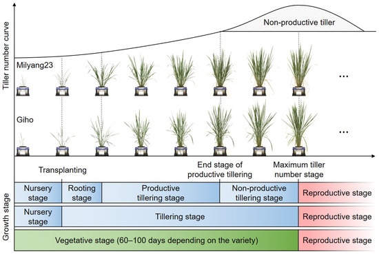 Developmental pattern of ‘Milyang23’ and ‘Giho’ during vegetative stages.