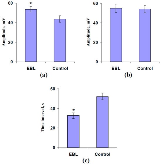 2.2. Influence of EBL Treatment on Burning-Induced Electrical Signals in Pea Plants