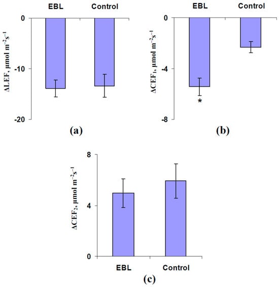 2.1. Influence of EBL Treatment on Photosynthetic Parameters Without Induction of Electrical Signals