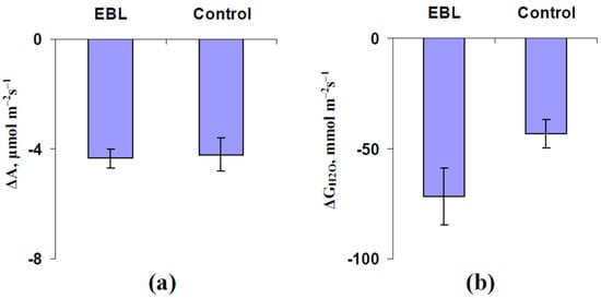 2.3. The Influence of EBL Treatment on Burning-Induced Photosynthetic and Transpiration Responses in Pea Plants