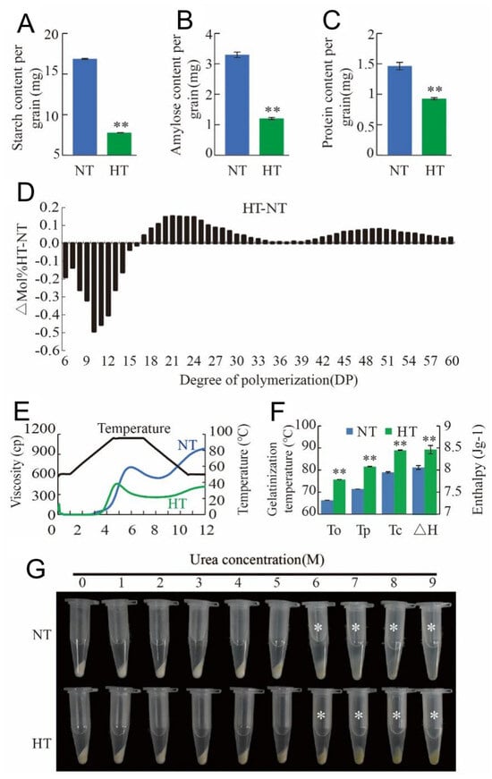 - Yamakawa, H.; Hakata, M. Atlas of rice grain filling-related metabolism under high temperature: Joint analysis of metabolome and transcriptome demonstrated inhibition of starch accumulation and induction of amino acid accumulation. Plant Cell Physiol. 2010, 51, 795–809. [Google Scholar] [CrossRef] [PubMed]