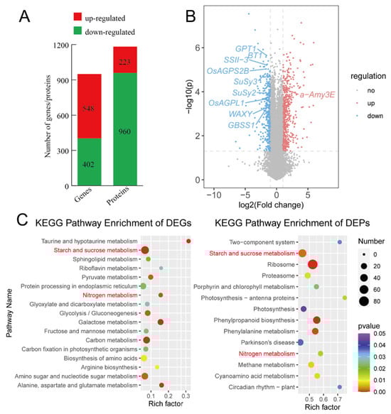 Zhao, S.; Cao, R.; Sun, L.; Zhuang, D.; Zhong, M.; Zhao, F.; Jiao, G.; Chen, P.; Li, X.; Duan, Y.; et al. An Integrative Analysis of the Transcriptome and Proteome of Rice Grain Chalkiness Formation Under High Temperature. Plants 2024, 13, 3309. https://doi.org/10.3390/plants13233309