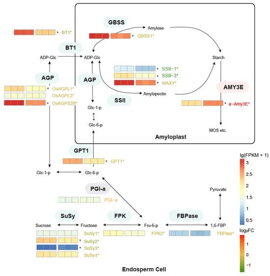 - Fu, F.; Xue, H. Coexpression Analysis Identifies Rice Starch Regulator1, a Rice AP2EREBP Family Transcription Factor, as a Novel Rice Starch Biosynthesis Regulator. Plant Physiol. 2010, 154, 927–938. [Google Scholar] [CrossRef] [PubMed]