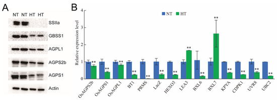 2.3. Genes and Proteins Involved in Sucrose and Starch Synthetic Metabolism Were Regulated by HT Stress