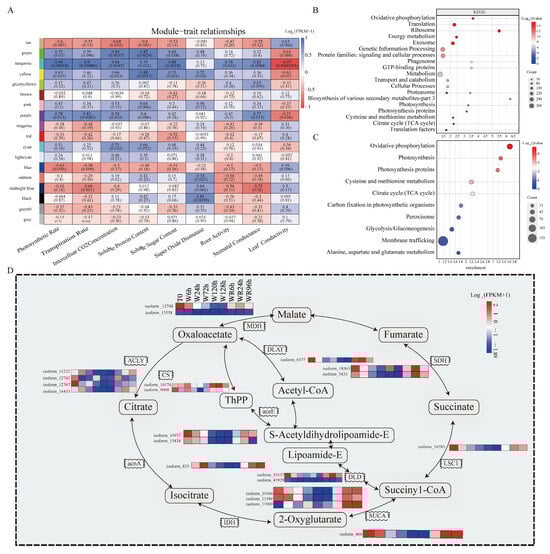 - Chen, J.; Zhang, L.; Liu, Y.; Shen, X.; Guo, Y.; Ma, X.; Zhang, X.; Li, X.; Cheng, T.; Wen, H.; et al. RNA-Seq-based WGCNA and association analysis reveal the key regulatory module and genes responding to salt stress in wheat roots. Plants 2024, 13, 274. [Google Scholar] [CrossRef]