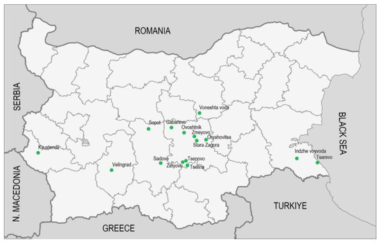 - Assyov, B.; Petrova, A.; Dimitrov, D.; Vassilev, R. Conspectus of the Bulgarian Vascular Flora, 4th ed.; Assyov, B., Petrova, A., Eds.; Bulgarian Biodiversity Foundation: Sofia, Bulgaria, 2012; ISBN 978-954-9959-58-1. [Google Scholar]
