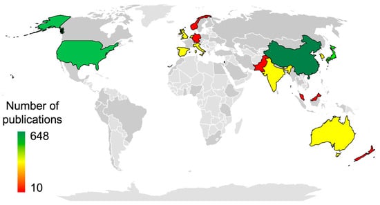 - Which countries are the primary contributors to scientific publications on agricultural robots for specialty crops?