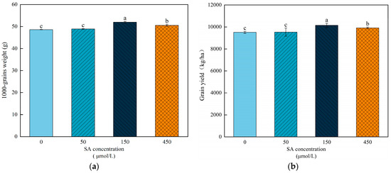 3.1. Effects of Exogenous SA Treatment During the Grain-Filling Stage on Grain Weight and Yield in Wheat