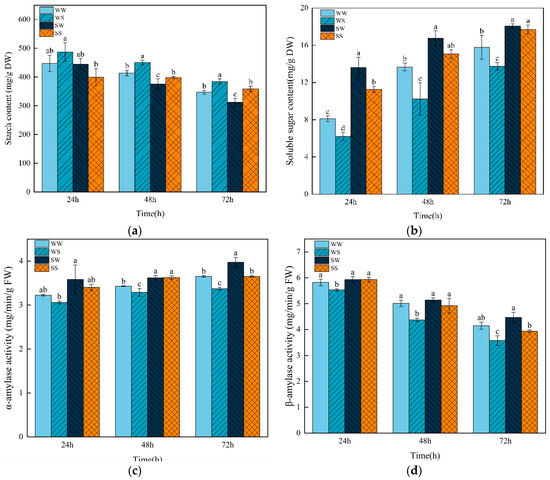 3.4. Effects of Exogenous SA Treatment During the Grain Filling in Parental Plants on the Degradation of Starch in Progeny Seeds Under Salt Stress
