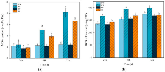 3.6. Effects of Exogenous SA Treatment During the Grain Filling in Parental Plants on MDA Content and ROS Release Rate in Progeny Seeds Under Salt Stress