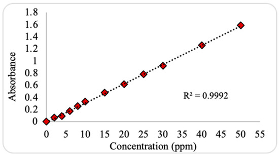 The calibration curve linearity was verified according to the correlation coefficient (R2), which exceeded 0.9992, as shown in Figure 3. The LOD was identified based on a signal-to-noise ratio of (3:1) and was 0.1309 ppm, with the SD value expressed as <2%. Similarly, the LOQ was identified by a signal-to-noise ratio of (10:1), and it was 0.3963 ppm. It can be noted that the LOQ was less than the lowest TC concentration obtained during the analysis (around 0.5321 ppm). Furthermore, an acceptable recovery rate of 97% ± 2 was achieved, which confirms the appropriateness of our laboratory analysis methodology.
