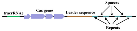 - Barrangou, R.; Fremaux, C.; Deveau, H.; Richards, M.; Boyaval, P.; Moineau, S.; Horvath, P. CRISPR provides acquired resistance against viruses in prokaryotes. Science 2007, 315, 1709–1712. [Google Scholar] [CrossRef]