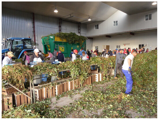 Another relevant consideration is understanding how the pathogen spreads among plants both in nurseries and in the fields of Huelva. Thus, the activities of uprooting, cutting, and handling plants in nurseries (Figure 7) can facilitate the spread of conidia and infection through the wounds produced. In fruit production fields, water splashes and wind, especially on the days following planting when sprinkler irrigation is used, can coincide with warm temperatures suitable for the plant pathogen. Additionally, workers during harvesting and cleaning operations can also contribute to pathogen dispersal. Thus, in our laboratory, 742 qPCR analyses for Neopestalotiopsis spp. were performed over the last two seasons on both symptomatic and asymptomatic plant samples, in which 181 positive cases were detected from various Spanish nurseries and fruit production fields, representing approximately 24% of the samples analyzed. This may give an idea of the extent of the outbreak (Figure 1).