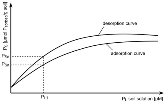 Adsorption–desorption hysteresis of soil phosphate. Note that to achieve a definite P solution concentration, the P coverage of the soil solid phase must be much higher during desorption (Psd) compared to adsorption (Psa).