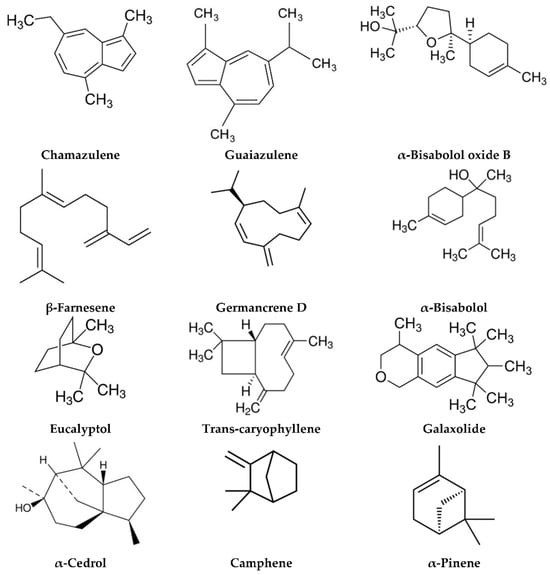 - Nogueira, T.; Cunha, A.P.; Roque, O.R. Plantas Aromáticas e Óleos Essenciais: Composição e Aplicações; Fundação Calouste Gulbenkian: Lisboa, Portugal, 2012; ISBN 978-972-31-1450-8. [Google Scholar]
