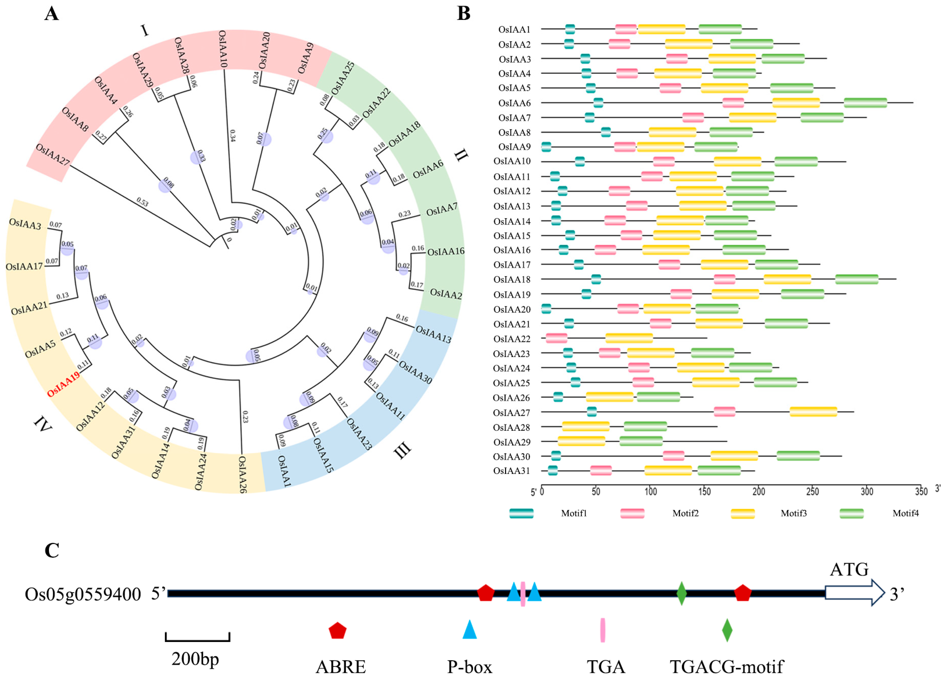 2.1. Bioinformatic Analysis of the Aux/IAA Gene Family in Rice