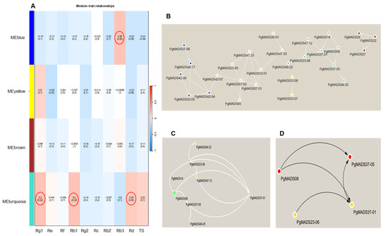 2.3.4. The Weighted Gene Co-Expression Network (WGCNA) of the PgMADS Gene Transcripts