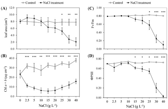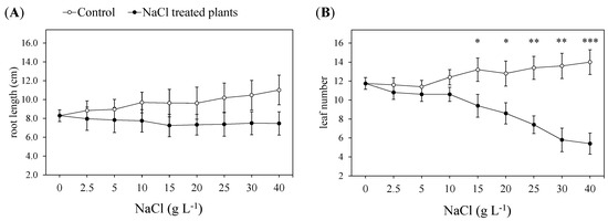3.1. Morphophysiological Response to Increasing NaCl Concentrations