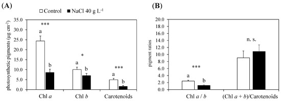 - Abdallah, S.B.; Aung, B.; Amyot, L.; Lalin, I.; Lachaal, M.; Karray-Bouraoui, N.; Hannoufa, A. Salt stress (NaCl) affects plant growth and branch pathways of carotenoid and flavonoid biosyntheses in Solanum nigrum. Acta Physiol. Plant. 2016, 38, 72. [Google Scholar] [CrossRef]