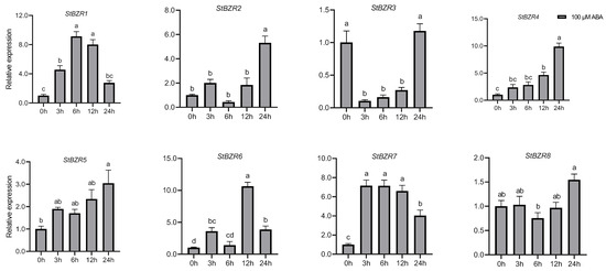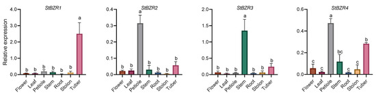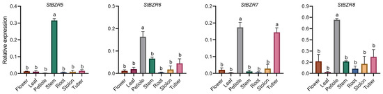 2.5. Expression Patterns of StBZR Genes in Different Tissues by qRT-PCR