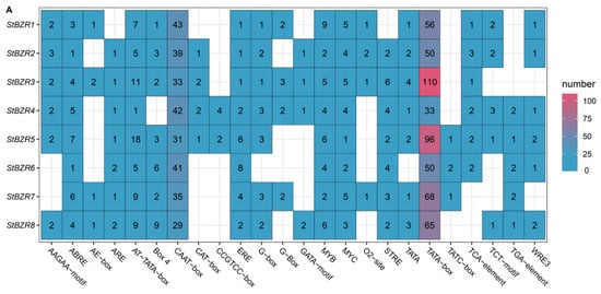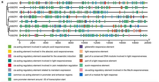 2.6. Distribution of Cis-Reactive Elements on the Promoter of StBZR Genes
