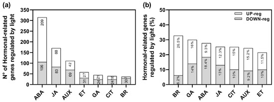 - Oh, E.; Kang, H.; Yamaguchi, S.; Park, J.; Lee, D.; Kamiya, Y.; Choi, G. Genome-Wide Analysis of Genes Targeted by PHYTOCHROME INTERACTING FACTOR 3-LIKE5 during Seed Germination in Arabidopsis. Plant Cell 2009, 21, 403–419. [Google Scholar] [CrossRef] [PubMed]