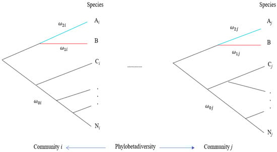 Apart from characterizing community differentiation by β-diversity, a further measurement is to combine β-diversity with phylogeny to define phylobetadiversity that measures community differentiation in terms of both community phylogeny and β-diversity (Figure 2). This index is calculated by the distance (branch length differences) between phylogenetic trees of different communities. Several methods have been proposed to estimate this index. Graham and Fine [110] discussed the application of phylobetadiversity in a biodiversity study, including an analysis of speciation, a combination with niche models, neutral theory, and global biodiversity patterns. However, the practical application of phylobetadiversity to conservation is rarely emphasized in the literature [111]. In theory, phylobetadiversity can also be used to design the number of communities for conservation, analogous to the use of β-diversity. A slight difference in phylobetadiversity implies that a few communities are appropriate for conservation.
