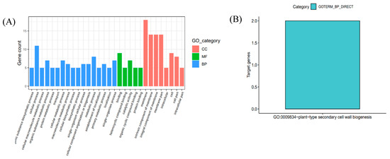 (A) GO annotation of candidate genes. (B) GO enrichment analysis of gene enrichment map with p < 0.05.